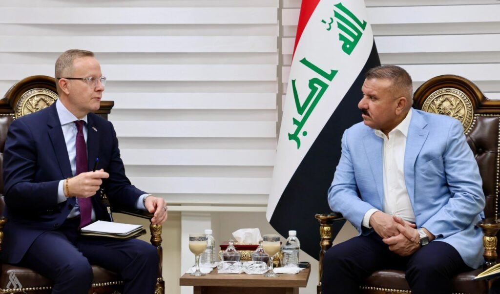 الصورة المرفقة تظهر وزير الداخلية عبد الأمير الشمري خلال لقاءه بالقائم بالأعمال السويدي يورغن ليندستروم والسفير الفلندي آنتي بوتكونين.
